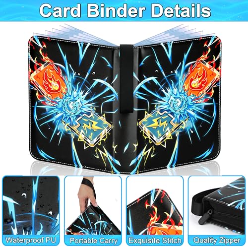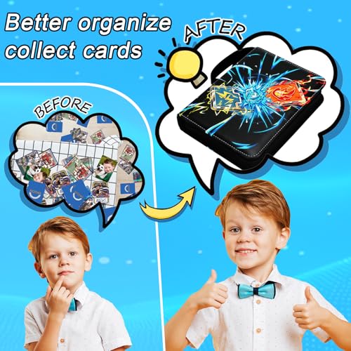 Premium Protection: Made of waterproof PU leather with exquisite stitching, which has portable wristband and zipper design. The cool cover design make this card collection binder a great way to store and display your beloved cards, avoiding loss and scratches