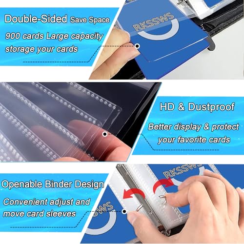 Large-Capacity: Our card binder with 50 removable sleeves fit 900 Cards, which has a saves space double-sided design. The transparent dust-proof sleeves makes it easier for you to organized your cards