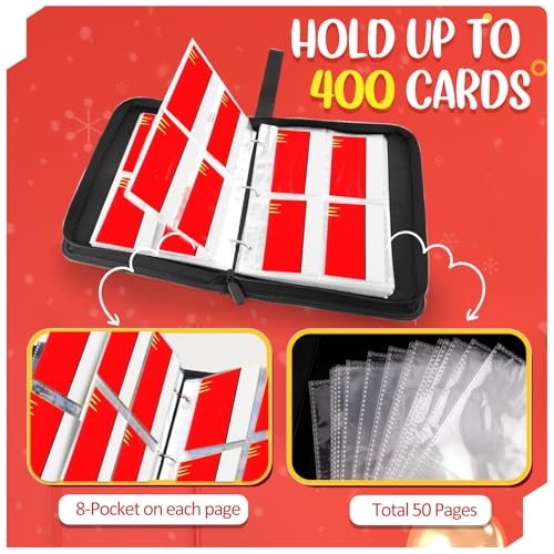 🔥【Large Storage Capacity】Size: 7*2*9.5 inches. The card binders contains 50 card sleeve pages and can hold 400 cards. The size of each pocket of the card page is 2.8*3.9 inches, which is a collectible trading card album. The card binder provides enough space to organize all your cards, which is perfect for storing and displaying cards.