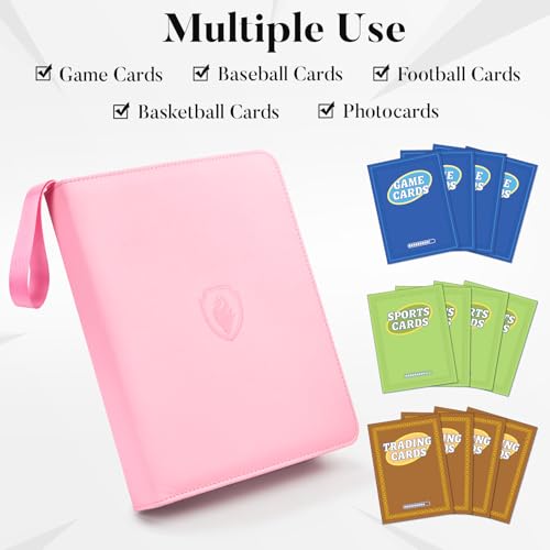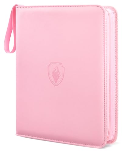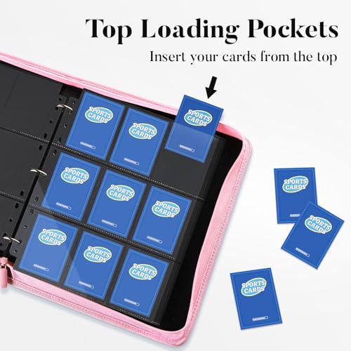 Fabmaker 9 Pocket Card Binder, Premium Trading Card Binder Holds 756 Cards, PU Cover 3 Ring Zipper Card Binder, Portable Baseball Card Binder, Collection Album for Game & Sport Cards, Pink