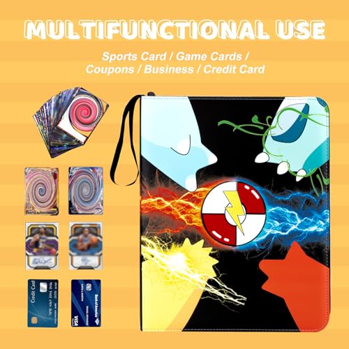 👍High-quality Card Binder: The card holders for trading cards is made of high-quality PU leather and smooth waterproof material. The internal page of the binder is made of PP material that is highly transparent and easy to display and browse. The zipper design ensures that cards are not lost. The soft lining prevents damage and provides comprehensive protection for your cards.