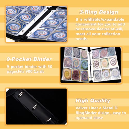 Jravkfi Card Binder 9 Pocket,Premium Trading Card Holder 900 Pockets 50-Page Double-Sided Storage Collection Book 3-ring Zipper Sports Book is A Toys Gift for Girls and Boys(Black)