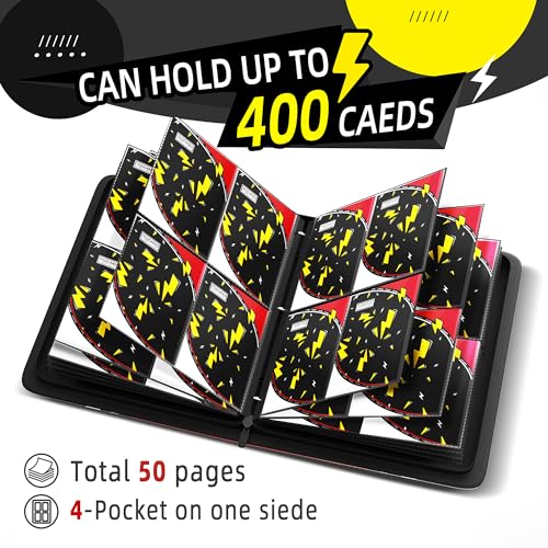 Trading Card Binder 4 Pocket,400 Pocket Card Collection Binder with 50 Removable Sleeves,PU Waterproof Top Card Book,3-Ring Zipper Collectible Trading Card Album for MTG/TCG/Card Holder Gift(Black)