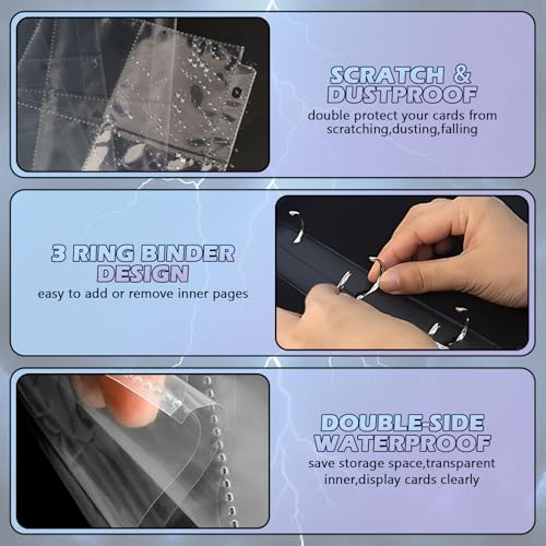 🛡 Huge Capacity for Storage Cards: Each page of this collectible trading card album features 4 pockets that allow for double-sided storage of game cards/sport card etc. Equipped with 55 high-quality detachable sleeves, card holder can hold up to 440 trading cards at most. With its practical three-ring design, you can freely add or remove the sleeves, easily meeting all kinds of collecting needs. It also helps cultivate good collecting and organizing habits.