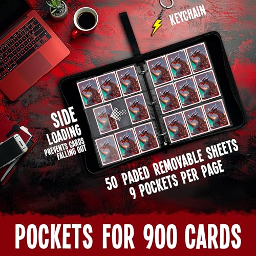 [LARGE CAPACITY & MAXIMUM PROTECTION] – Holds up to 900 cards in total. This sports card binder includes 9 pockets per page with 50 double-sided removable sleeves, and cards insert from the side for extra security. Built with waterproof, dustproof, anti-bend materials, this collectible card album protects your collection from everyday damage so it stays crisp, clean, and valuable over time.