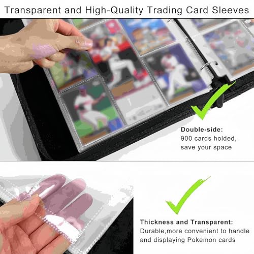 【Extensive Storage Capacity】: This Trading Card Storage Album features a large capacity of 900 pockets, ensuring ample space for your entire card collection. Each binder comes equipped with 50 durable 9-pocket pages, offering organized and easy access to your cards.