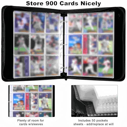 Trading Card Storage Album – 900 Pocket Card Binder with 50 Durable 9-Pocket Pages, Zipper Closure Collector’s Album, Removable Sleeves for Card Protection, Perfect for Collectible Trading Cards