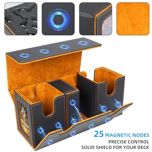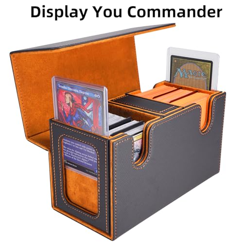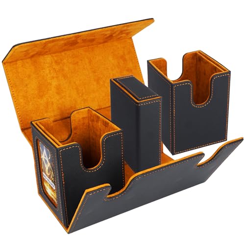 AFIING MTG Commander Deck Box 200 Double Sleeved Cards Storage, 3-in-1 Magnetic Card Case Organizer for Magic: The Gathering TCG CCG, 4 Dividers & 2 Toploaders (Black/Orange)