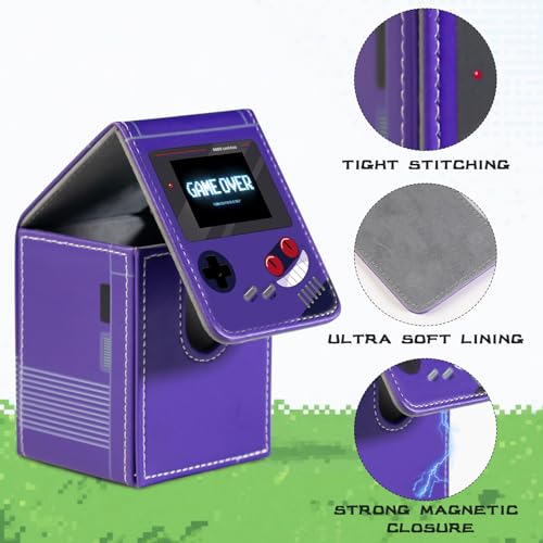 Card Deck Box Fits for YGO MTG,100+ Card Storage Box Trading Games PU Leather Storage Premium Deck Case (Game Purple)