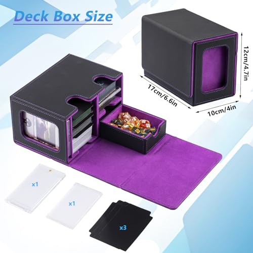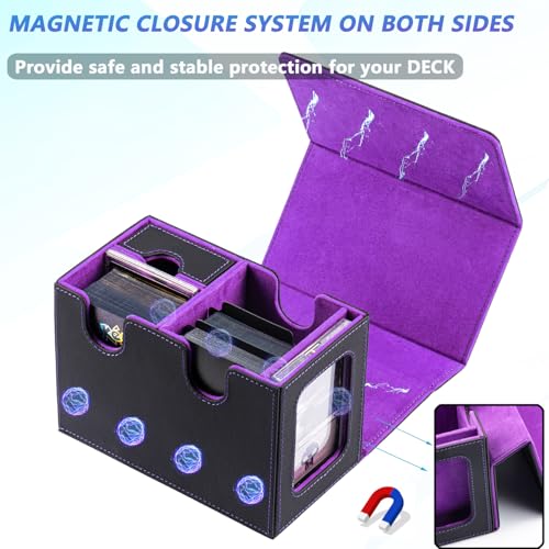 【Premium Quality Material】 Featuring a sturdy and durable PU leather shell for shock protection/dust/ moisture proof and a soft microfiber interior to safeguard cards from scratches.commander deck box has a very strong magnetic closure, even if you shake the box hard it won’t open and trading cards won’t fall out, ensuring safe storage.