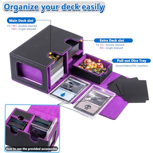 WELLMILLER MTG Deck Box for Commander with Dice Tray,Designed for MTG Commander Card Deck Box Fits 200+ Double Sleeved Cards,Card Storage Box with 3 Dividers 2 card holder