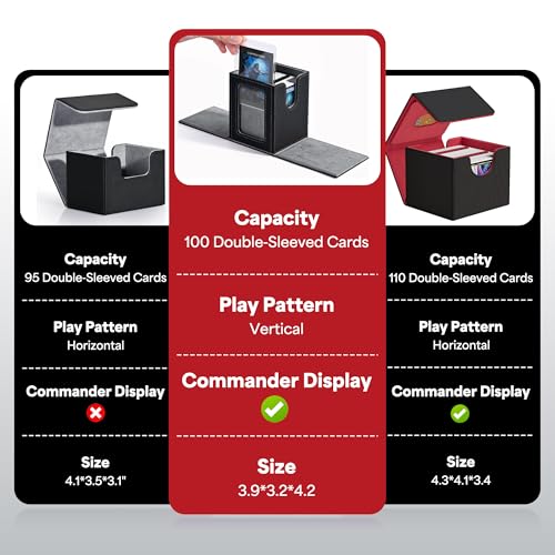 Ample Storage: With a capacity to hold up to 230+ unsleeved cards, 120+ single-sleeved cards, or 100+ double-sleeved cards; The compact size and lightweight construction make it convenient to carry around, whether you’re heading to a tournament or gaming night with friends