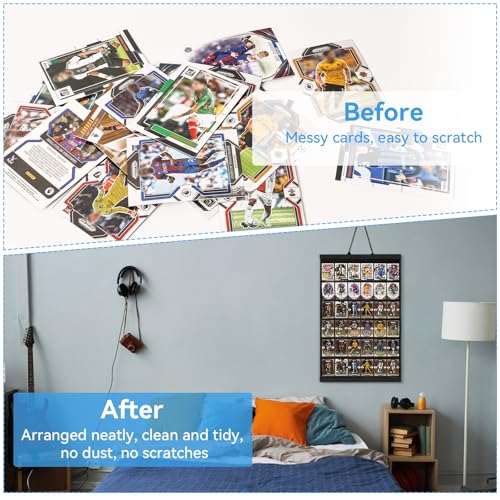 NEW CARD DISPLAY WAY – No bulkiness, fragility, and complex installation issues of traditional baseball card case from now on, our new card display shelf has sturdy wooden rack combined with lightweight structure and soft felt material, not only make it easy to hang and protect your cards but also make the display area look neat and elegant