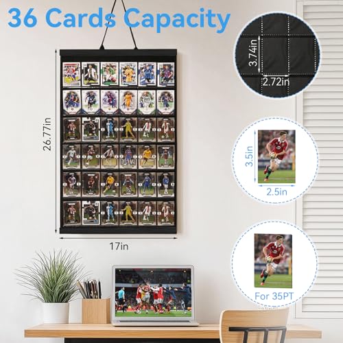 36 Cards Display Case – 35PT Graded Sports Card Frame – with PVC Protection & Clear View for Baseball Football Basketball Trading Card Wall Display, Black