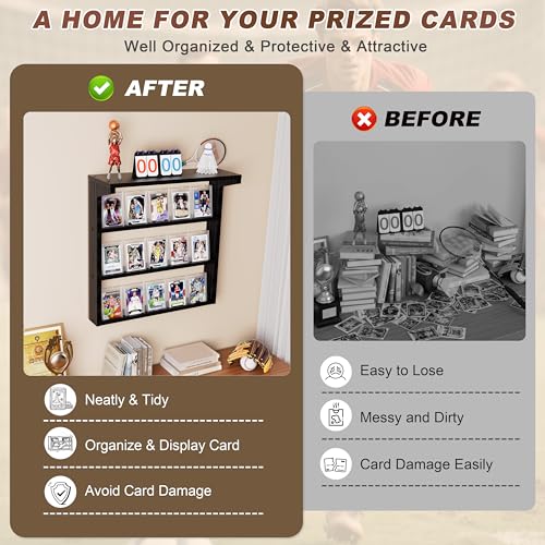 The Ideal Gift For Sports Card Collectors – Elevate your cherished sports card collection with this wooden card display stand. The wall-mounted card display shelf provides an optimal viewing angle, effortlessly turning your beloved cards into an exquisite display gallery