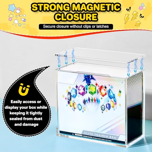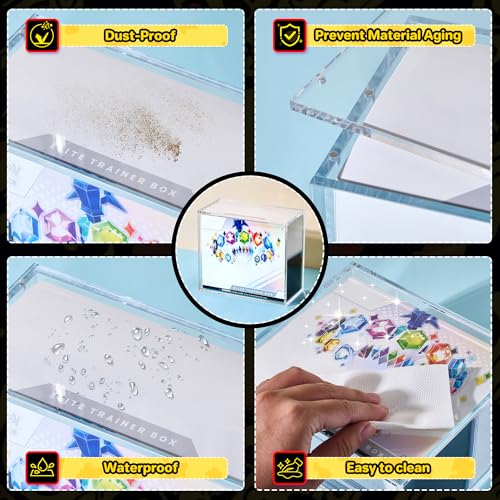 Perfect Fit for ETB Boxes: No Shifting or Gaps, our etb protector case designed with exact dimensions to perfectly compatible with Elite Trainer Boxes, this acrylic etb case prevents unwanted movement inside the box—ideal for protecting sealed collectibles in pristine condition. Collectors can rest assured their boxes stay secure and intact
