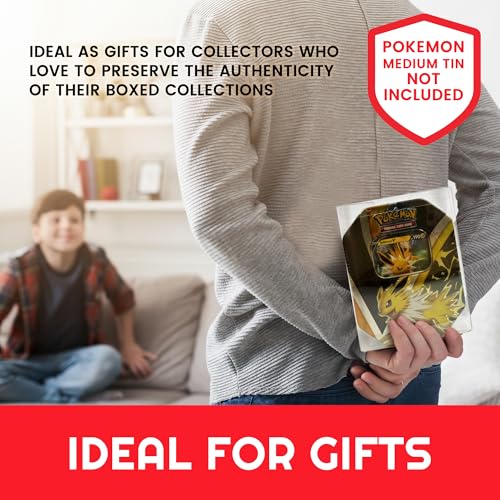 Perfect Custom Fit: Enjoy a snug and secure fit with precise dimensions of 11.8 x 7.5 x 15.6 cm. Our protectors are custom-made for Pokemon Medium Tins, ensuring your collectibles are perfectly protected and displayed