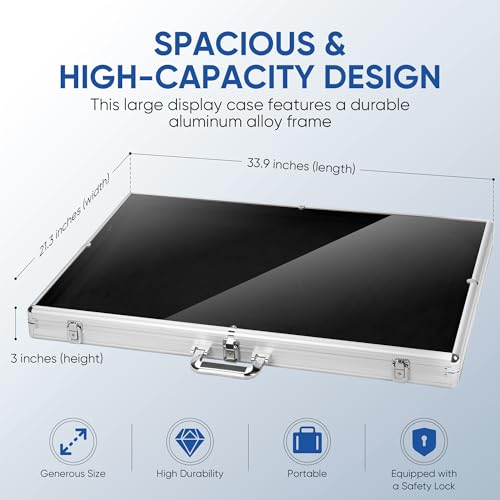 Liaakrr 34″x22″ Large Aluminum Card Show Display Case with Lock — Portable Tabletop Showcase for Trading Cards, Sports Cards, TCG & Jewelry, Clear Acrylic Anti-Theft Display Box with Handle