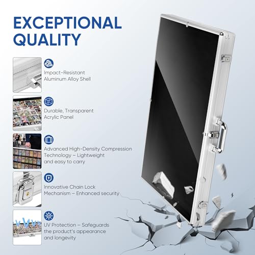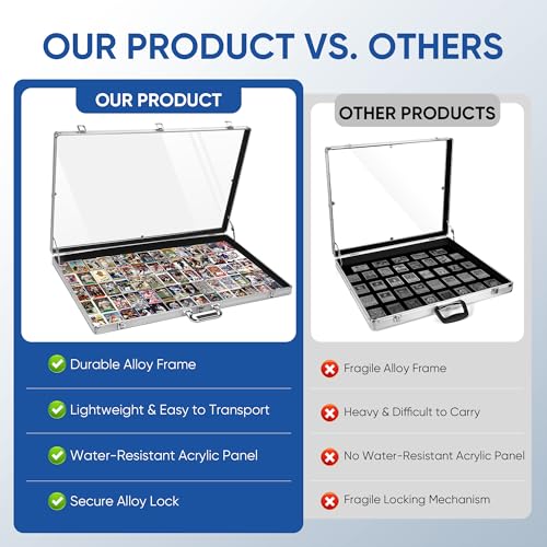 Lightweight, Portable & Travel-Ready Design:Designed as a premium portable display case, this aluminum-acrylic card case display includes an ergonomic handle and arm-lock lid support, making it easy to transport and set up at card shows, retail booths, and collector events.