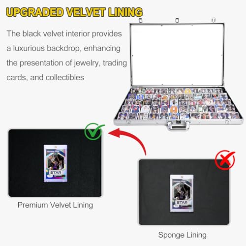 【Upgraded Velvet-Lined Interior for Superior Protection】Features a plush velvet interior lining to safeguard your valuable cards, jewelry, and collectibles from scratches, dust, and friction. Unlike standard foam or plastic liners, velvet ensures a luxurious and damage-free display