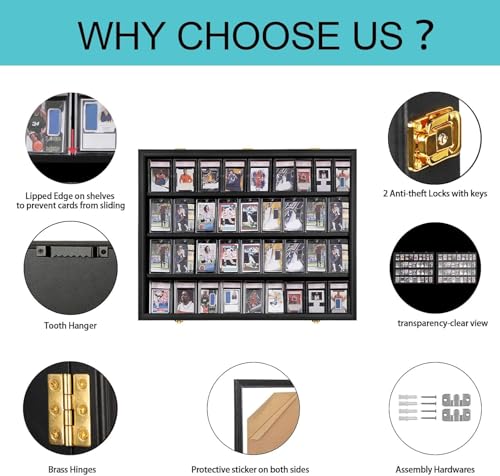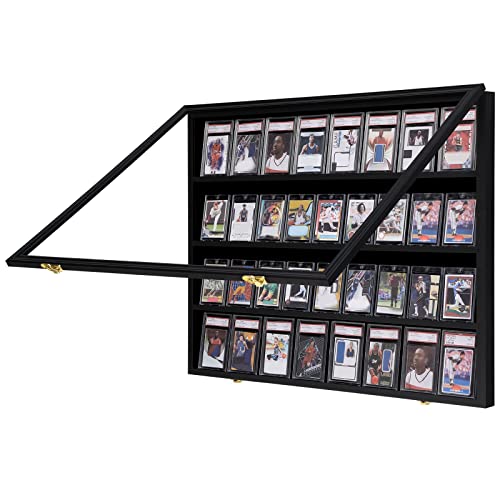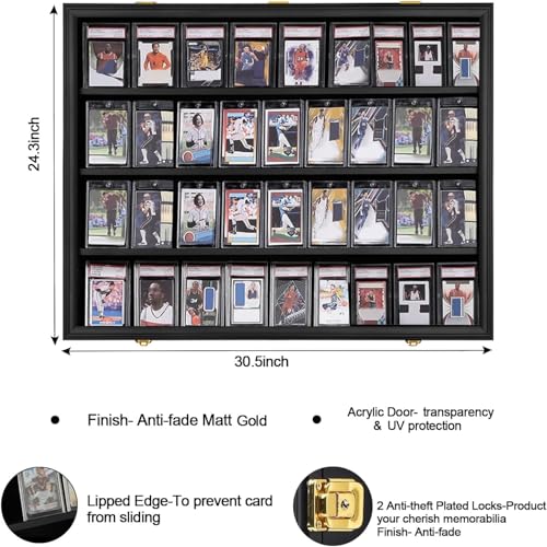VERANI 36 Baseball Card Display Case, Graded Sports Card Display Frame with UV Protection & Lock, Large Wall Cabinet for Football Hockey Basketball Trading Cards (31×24.3×2.1 in)