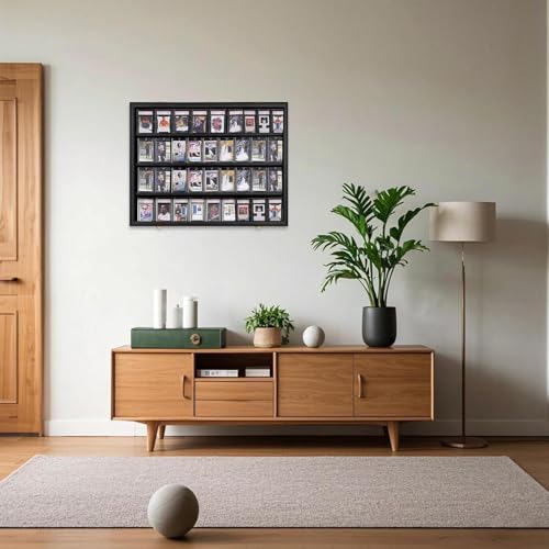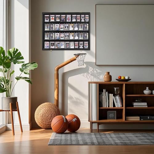 Sturdy Frame & Large Capacity: Constructed with a solid wooden frame measuring 31”W x 24.3”H, this VERANI display case is designed to securely hold and present 36 of your graded sports cards in a single, impressive layout.