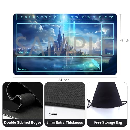 Playmats Compatible Lorcana Size 24×14 Inches TCG Gaming Mat 10, Non-Slip Rubber with Zones Play Mat and Free Storage Bag (DIS56, 24 x 14 in-zone1)