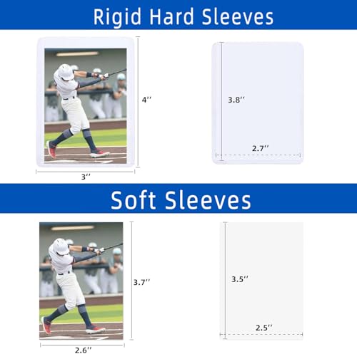 400 Card Sleeves Hard Plastic, Arjiekwei 3″X4″ Baseball Cards Protectors Plastic, Premium Card Holder for Trading Sports Baseball Football Game Cards (200 Hard Sleeve + 200 Soft Sleeve)
