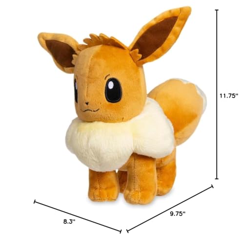 Cuddle Up with Plush Eevee This adorable Eevee plush has its tail held high—it’s eager to go on an adventure with its Trainer! Whether you set out to explore the bushes and trees of the backyard or the shelves and sofas of the living room, Eevee is one loyal friend you won’t want to leave behind! Measures about 11 ¾ inches tall and 9 ¾ inches long Soft fabric and embroidered details Pokemon Center Original Item Dimensions: 9.8 x 8.3 x 11.8 inches (24.8 x 21 x 29.9 cm) Materials: All new material / polyester / EVA / polypropylene / polyurethane foam Care Instructions: Hand Wash Only. Line Dry. Recommended Age: 4+ Years Item Weight: 4.3 OZ