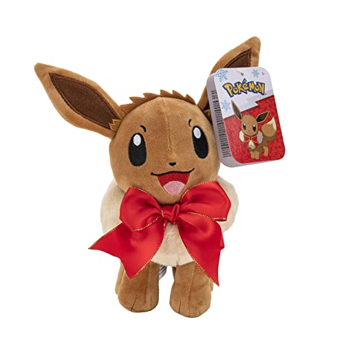 Pokèmon PKW0200 Holiday BOW-8-Inch Eevee Plush with Unique Accessory, Multi