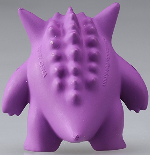 Gengar is a dark purple, bipedal Pokemon with a roundish body. It has red eyes and a wide mouth that is usually curled into a sinister grin. Multiple spikes cover its back, and it has large pointed ears. Its arms and legs are short with three digits on both its hands and feet. It also has a stubby tail.