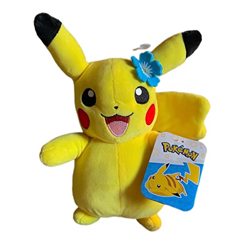 Pokemon 8 Inch Plush Officially Licensed Stuffed Animal Super Soft Cuddly Toy Kids (Pikachu (Blue Flower))