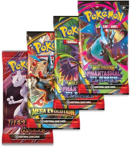 Choose Your Charizard! Under the right conditions—including a strong bond with its Trainer—Charizard can surpass its own limits and Mega Evolve! With this tin, you can choose the raging blue flames of Mega Charizard X ex or the aerial agility of Mega Charizard Y ex, then find more Pokémon inside a handful of booster packs.