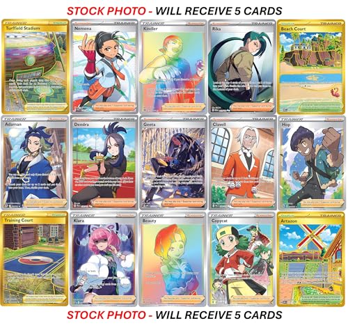 Pokemon 5 Full Art Trainer Card Lot – X1 Secret Rare, X4 Full Art Etched Cards – No Duplicates
