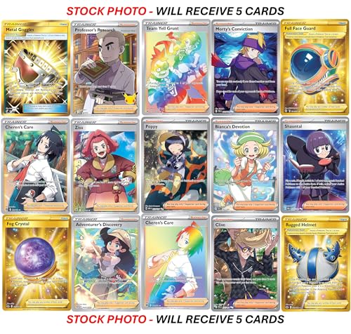 Boost your Pokémon collection with this exclusive bundle of full-art trainer cards! This powerful set includes 4 full-art etched cards, along with 1 Secret Rare (Gold, Rainbow, or Illustration Rare) trainer card. That’s a total of 5 stunning cards to add to your deck or display. Best of all, there are no duplicates, ensuring a unique and exciting addition to your collection!