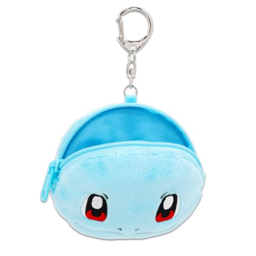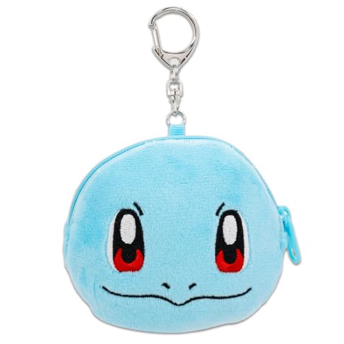 Squirtle Coin Purse Set – Bundle with 4″ Pokemon Mini Pouch with Keychain Plus Pokemon Cards | Squirtle Coin Wallet for Women. This Squirtle stuffed animal set comes with a plush coin bag in the shape of Squirtle, measuring 4″ tall, and comes with a keychain. Perfect for fans, this adorable Squirtle coin wallet is the perfect size to give away at your next Pokemon themed party, to give as a gift for that Squirtle fan you adore, or as personal reward. Use the Squirtle coin bag as a stuffed toy party favors, party decor, gift bag fillers and more. The perfect addition to any other Pokemon merchandise. Officially licensed Pokemon Squirtle plush coin bag also includes 3 Pokemon common cards.