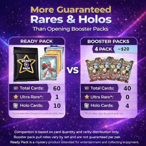 The Ready Pack offers a fun and exciting opening experience, consistently earning positive feedback from our customers. Perfect for kids, new collectors, and longtime Pokémon fans alike. If you’re shopping for a child, grandchild, or Pokémon fan of any age, this pack makes a great gift!